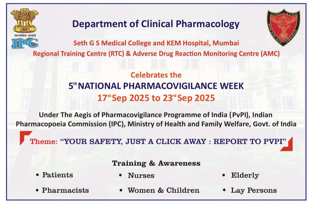 Department of Clinical Pharmacology was established on 1st June 1995 as a super-specialty Department. Dr Nilima Kshirsagar was the first Professor and Head of the department. The first DM Clinical Pharmacology student was Dr Balaji More who enrolled for DM in July 1998